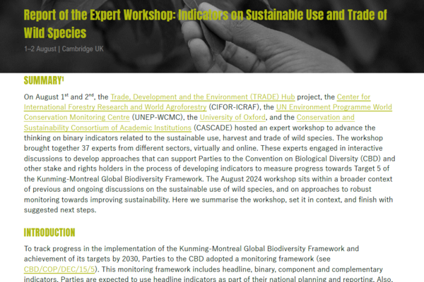 Expert Workshop Report: Indicators on Sustainable Use and Trade of Wild Species